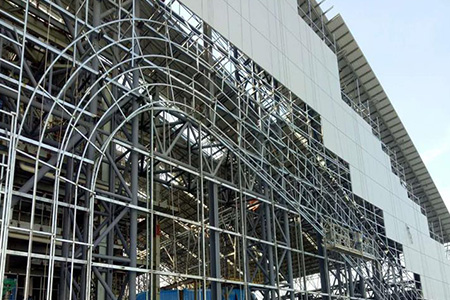 煤棚料仓网架受损故障的后期维护 2025-2-22 煤棚网架这类建筑构造的横断面呈“拱形”,跨距一般60-70米之上,高宽比在30米之上,长短几十米到两百米不一,归属于大跨距的柱面网壳构造。其支撑板标准只能俩对边落地式支撑板,两边则张口或封闭式。安裝工程施工时不......